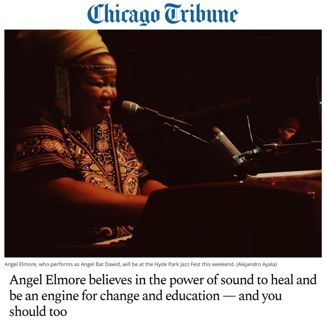 Angel works in collaboration with organisations like Music Moves Chicago, institutions like Old Town School of Folk Music, and bandmates and friends to develop and teach music education courses for Chicago's South Side youth. These programmes take place in community centres, in the street, local schools and juvenile detention centres - wherever the youth are at. Always in these programmes these youth are participants - they are encouraged to compose, experiment and, ultimately, are given the space to find themselves in this music. This expansive approach to arts education - encompassing spiritual practice, history, dancing, music theories and more - allows for travel - to other times and spaces through different rhythms and scales.