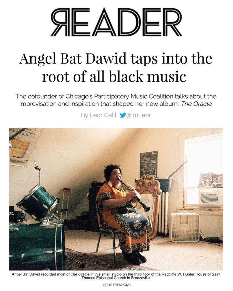 Angel Bat Dawid is a Black American Composer, Improviser, Clarinetist, Pianist, Vocalist, Educator and DJ. In 2019 she released her debut album The Oracle with Chicago label International Anthem Recording Co.. Recorded using only her cell phone in various locations, the album received wide-spread critical-acclaim with Pitchfork declaring it, “a vibrant, spiritual, free-jazz document of black life as it stands today.” Known for her prowess as a bandleader and performer, Angel has composed and performed several live pieces including her latest release “Requiem for Jazz" which was originally performed at the Hyde Park Jazz Festival in 2019, and “Peace: A Suite for Skylanding,” commissioned by the Art Institute of Chicago for Yoko Ono’s outdoor Skylanding installation.