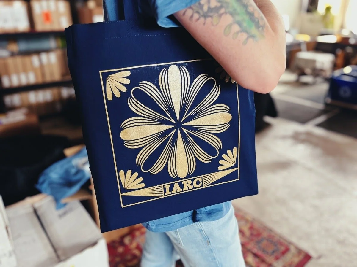 Check out our IA11 Lightweight Tote, now in stock and ready to ship. Features our #IA11 anniversary chrysanthemum emblem – shiny gold ink on a navy blue lightweight tote, printed in Chicago.