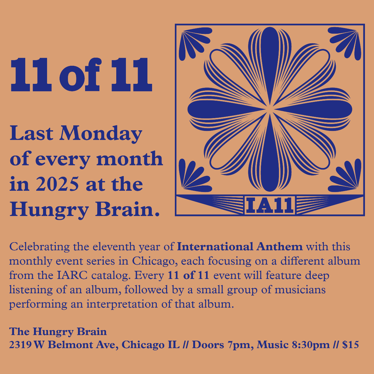 As part of the #IA11 celebration, we have been proud to present this special event series in Chicago, focusing on a different album from our catalog on the last Monday of every month across 2025 at the Hungry Brain. Each 11 of 11 event features deep listening of an album, followed by a small group of musicians performing an interpretation of that album.